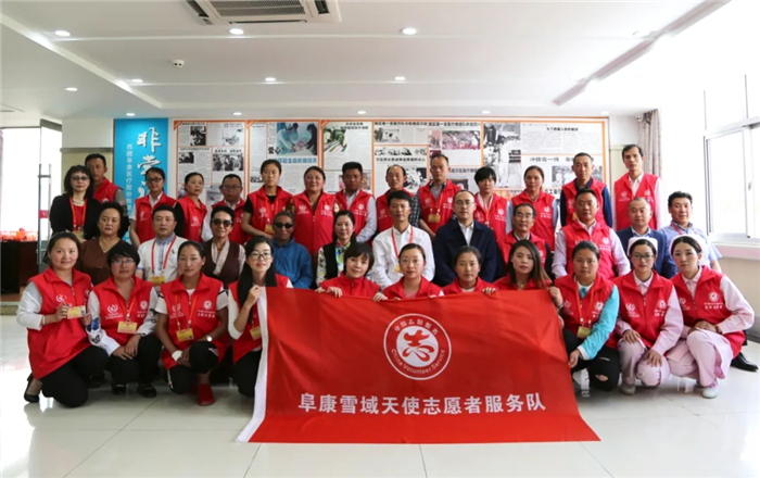 西藏阜康雪域天使志愿者服務(wù)隊成立于2017年,以"奉獻(xiàn)、友愛、互助、進(jìn)步”為宗旨,在患者就診秩序維護(hù)、敬老助殘、醫(yī)療解答、保護(hù)環(huán)境、社區(qū)義診、健康講座、送醫(yī)送藥下鄉(xiāng)等領(lǐng)域開展了多種形式的志愿活動。