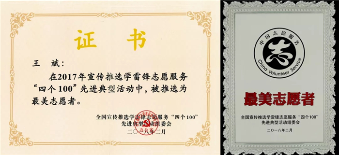 西藏阜康雪域天使志愿者服務(wù)隊隊長王斌,在2017年學(xué)雷鋒志愿服務(wù)"四個100”先進(jìn)典型活動中,被推選為最美志愿者。