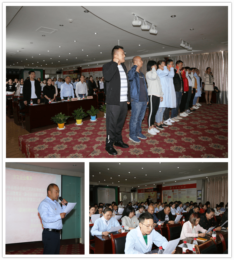 大會由公司黨委副書記陳彬主持,全體黨員共唱國歌,觀看黨史宣傳片。11名新黨員在劉瀟瀟同志的帶領(lǐng)下宣誓入黨,劉連福同志帶領(lǐng)全體人員共同誦讀了阜康企業(yè)文化。